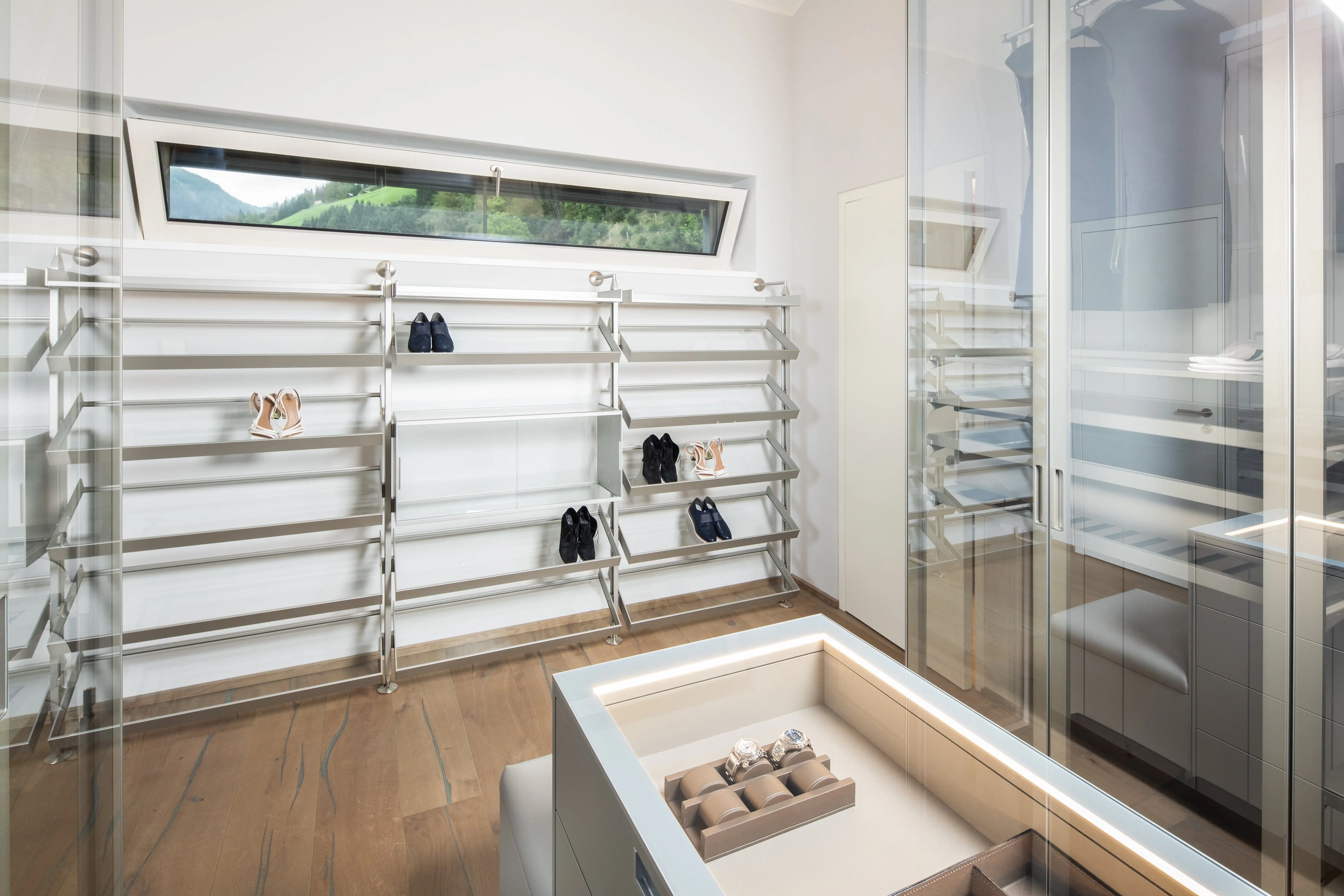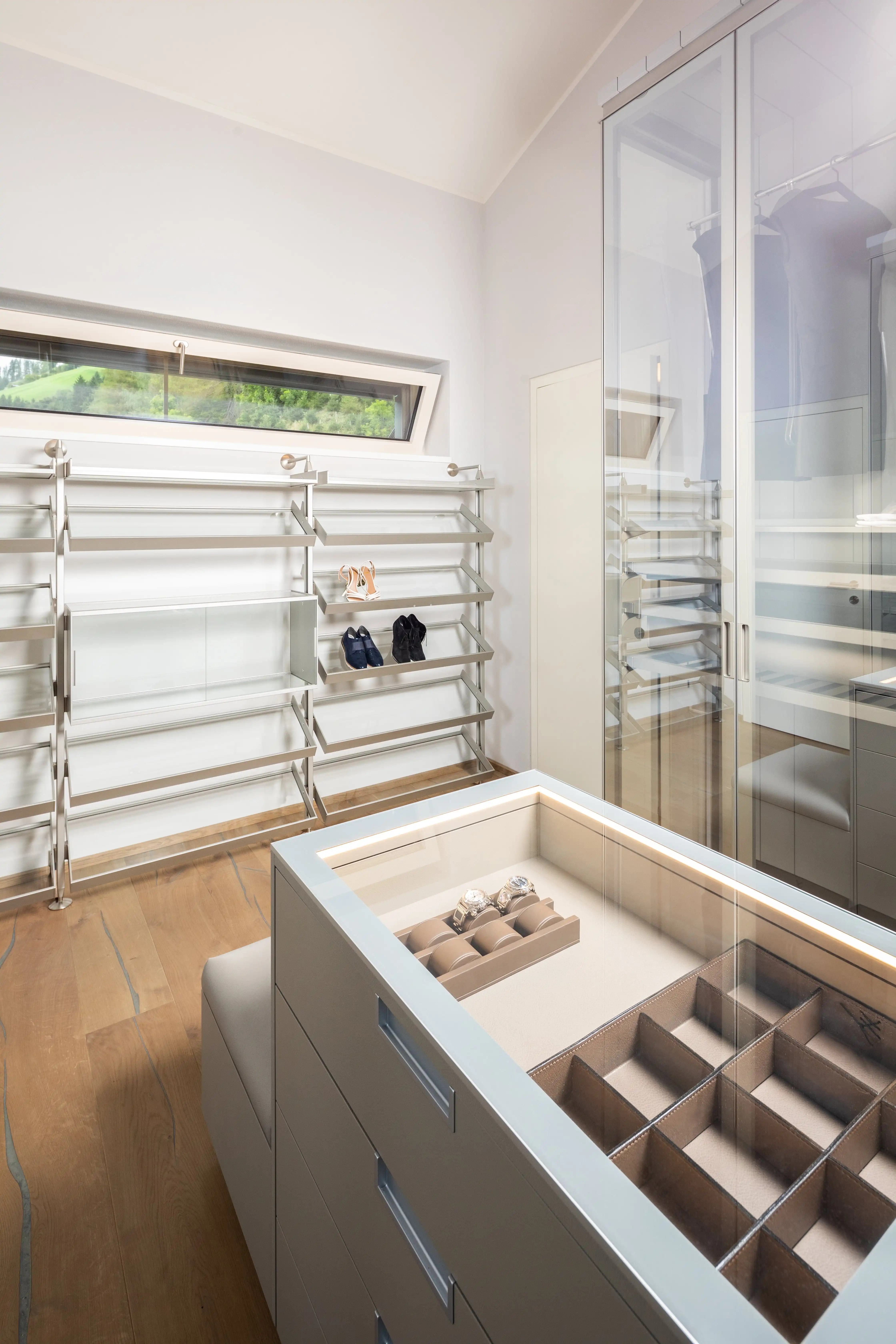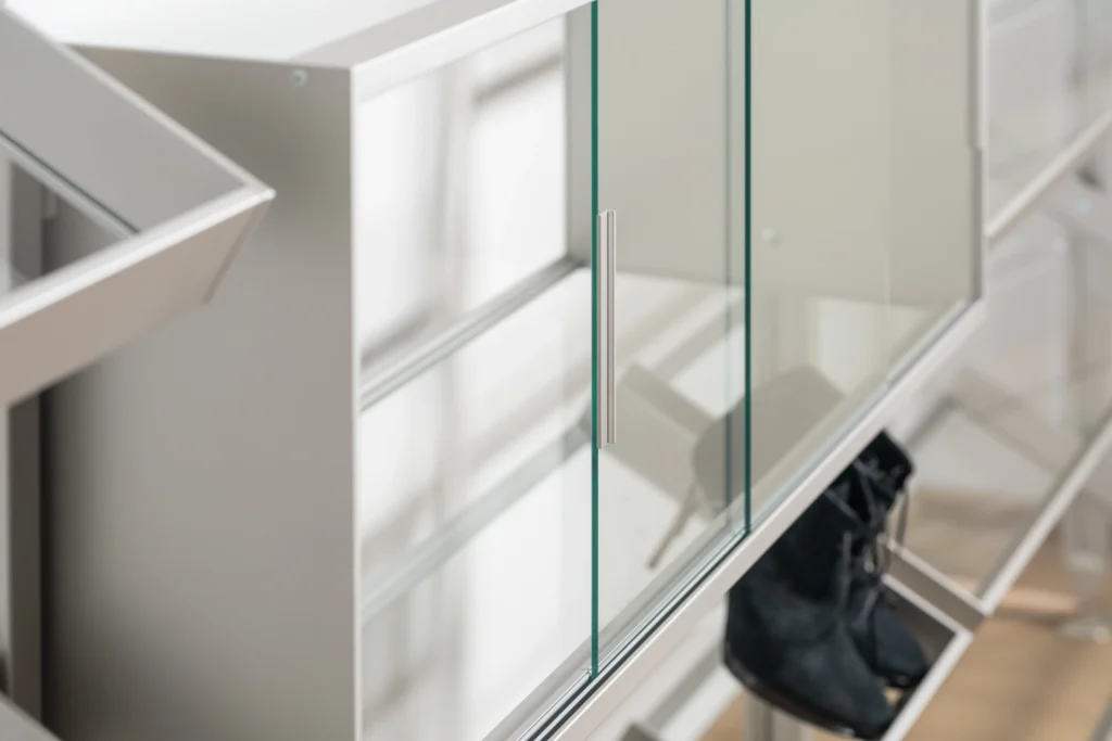 Unter dem Fenster befindet sich das Rimadesio Zenit Element für Schuhe und Schuhputzzeug