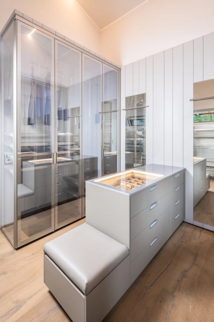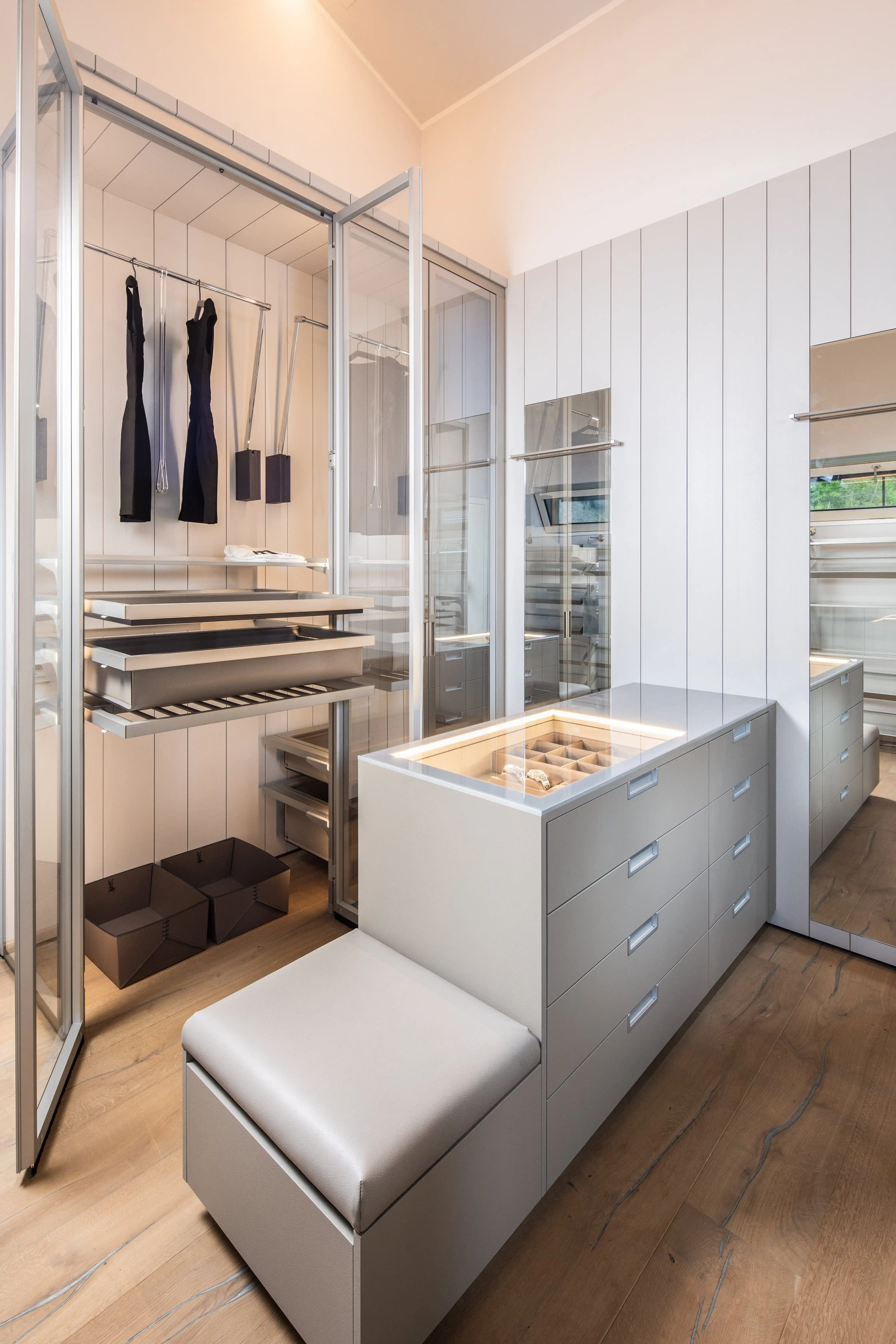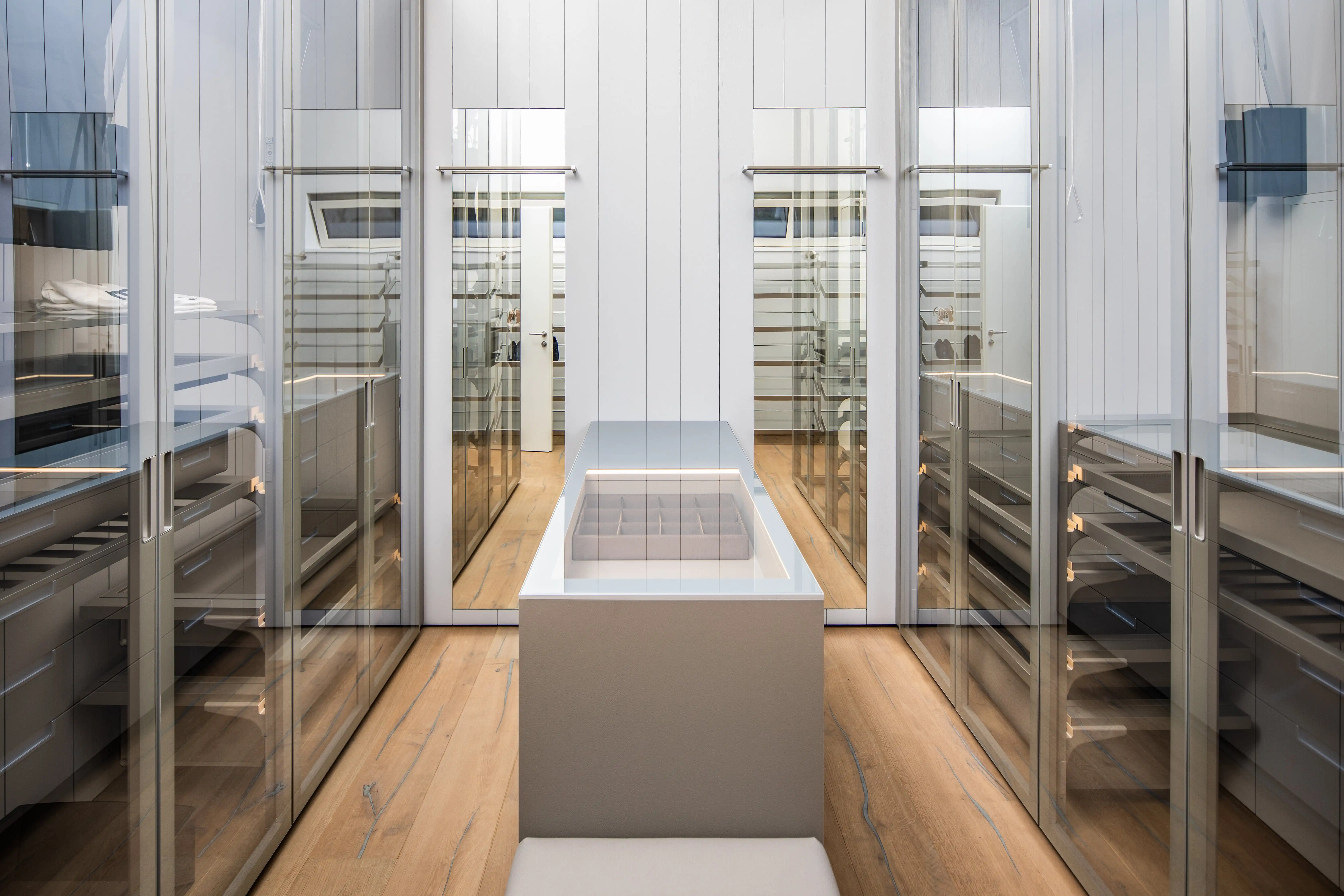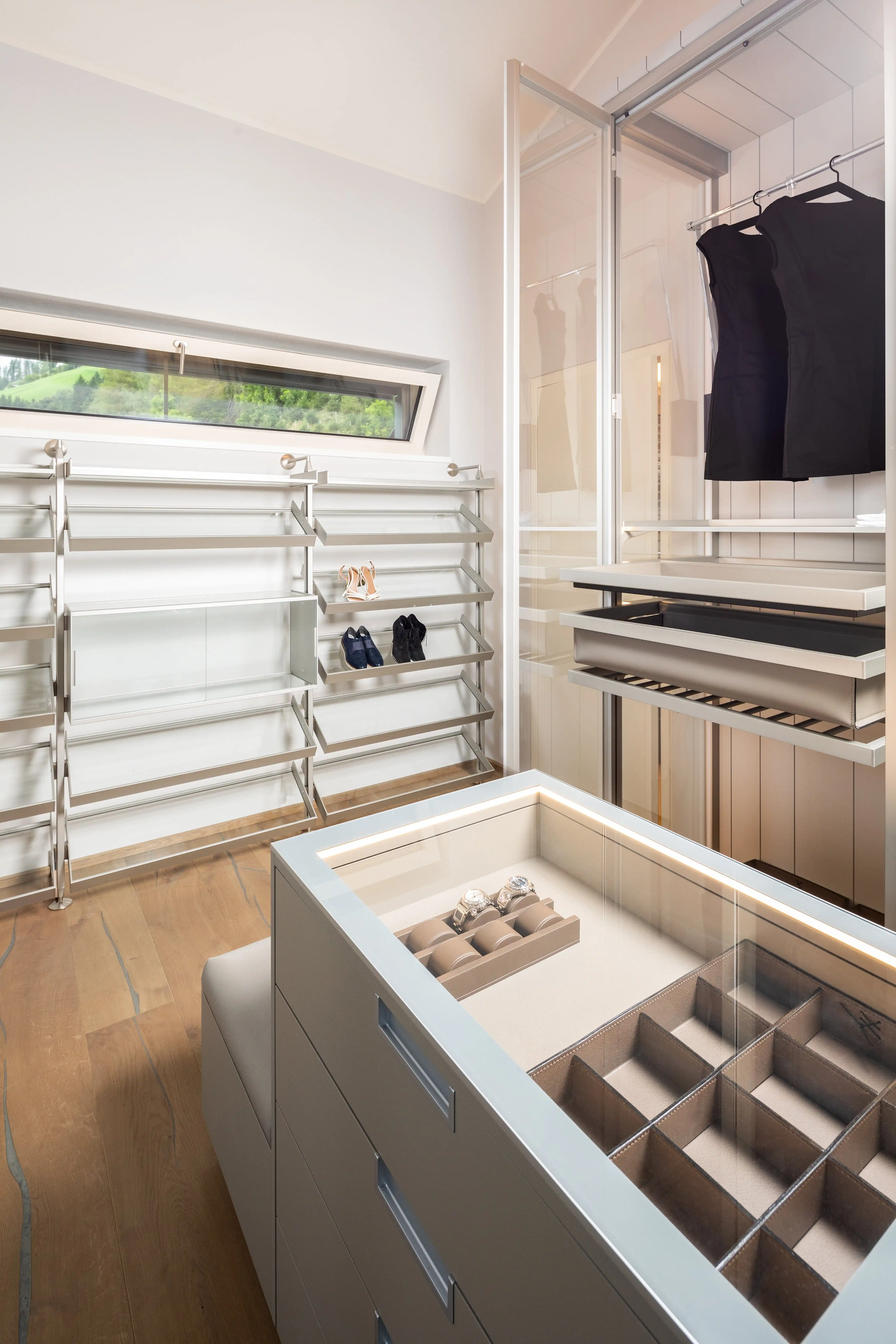 Unter dem Fenster befindet sich das Rimadesio Zenit Element für Schuhe und Schuhputzzeug