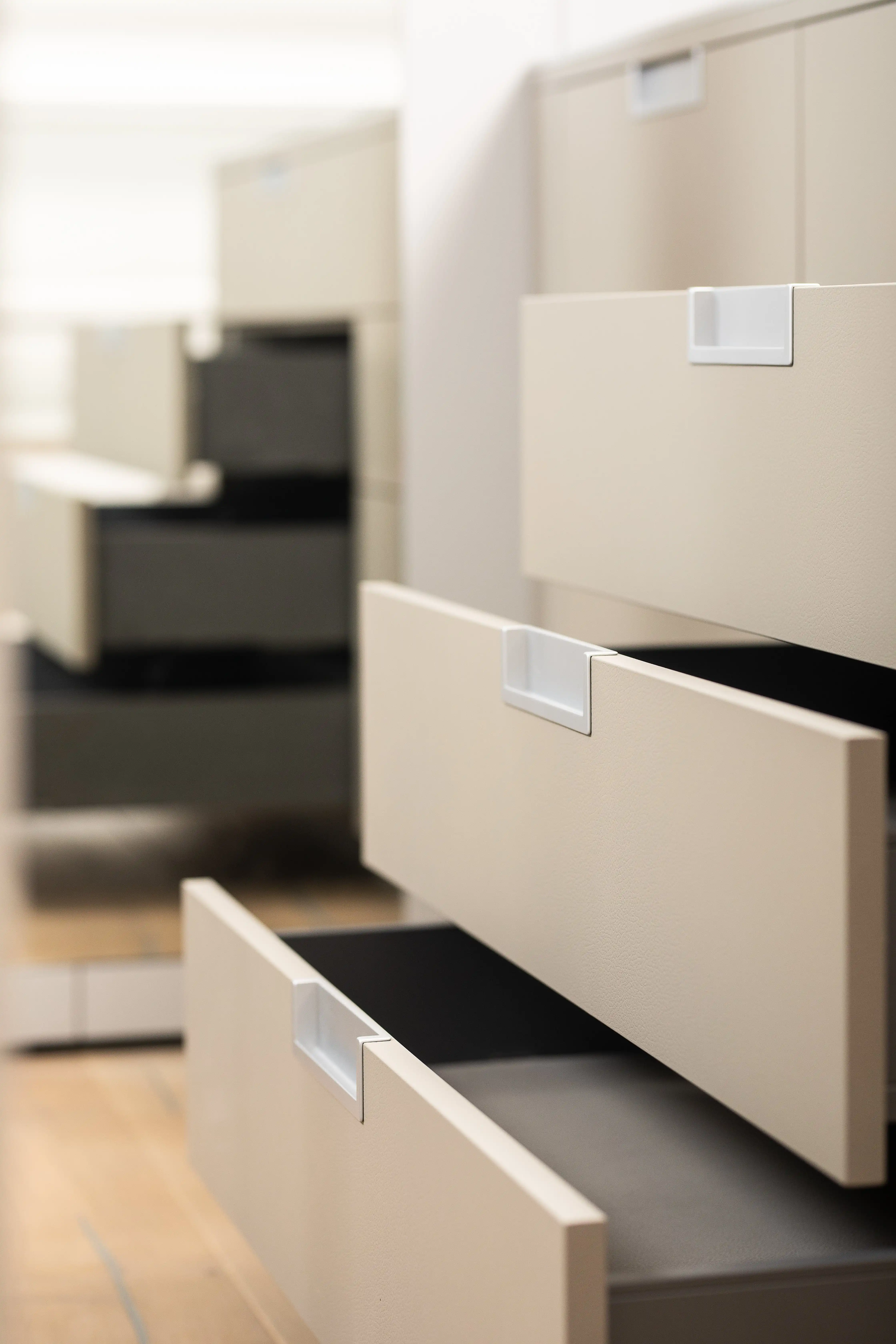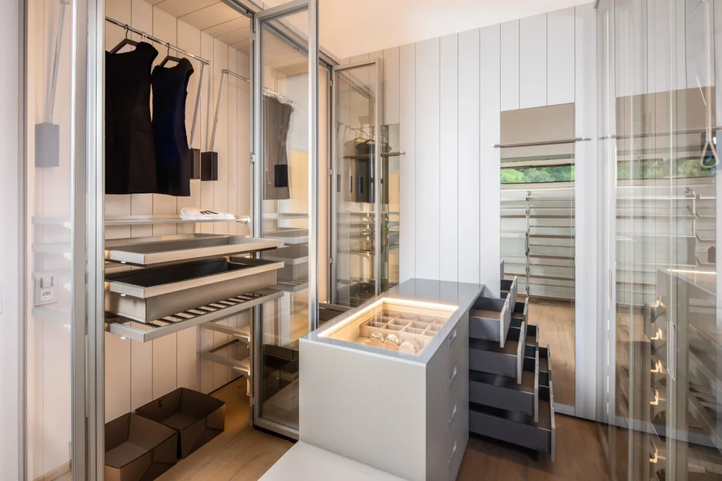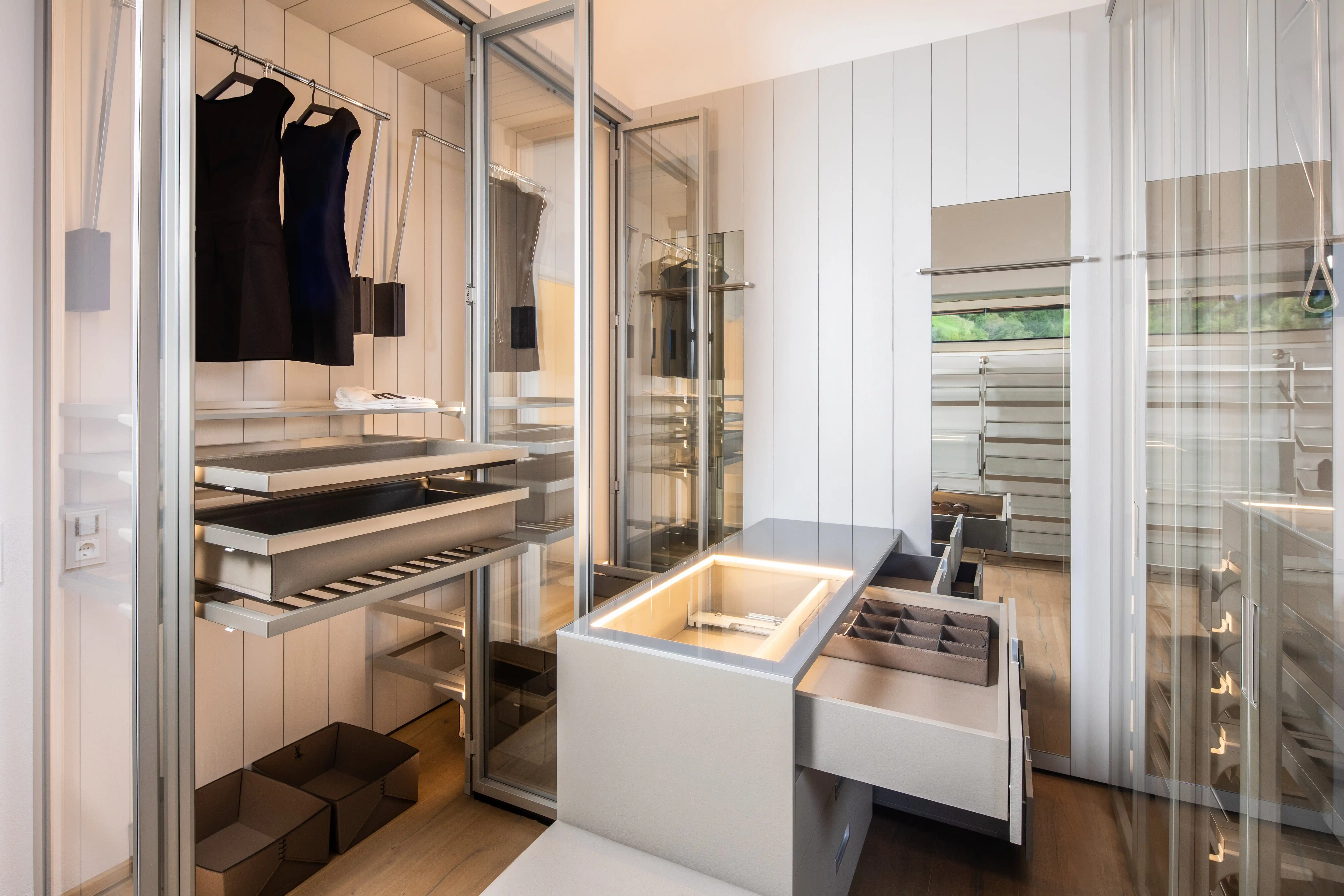 Rimadesio Coversystem in der integrierten Wandvertäfelung aus der hauseigenen Tischlerei