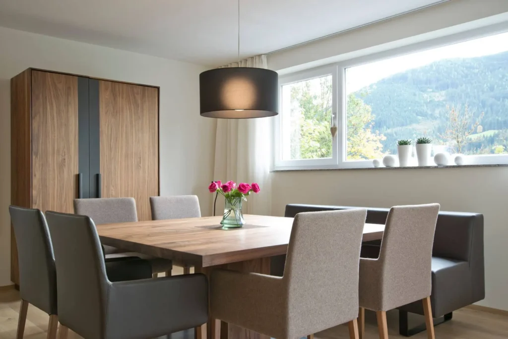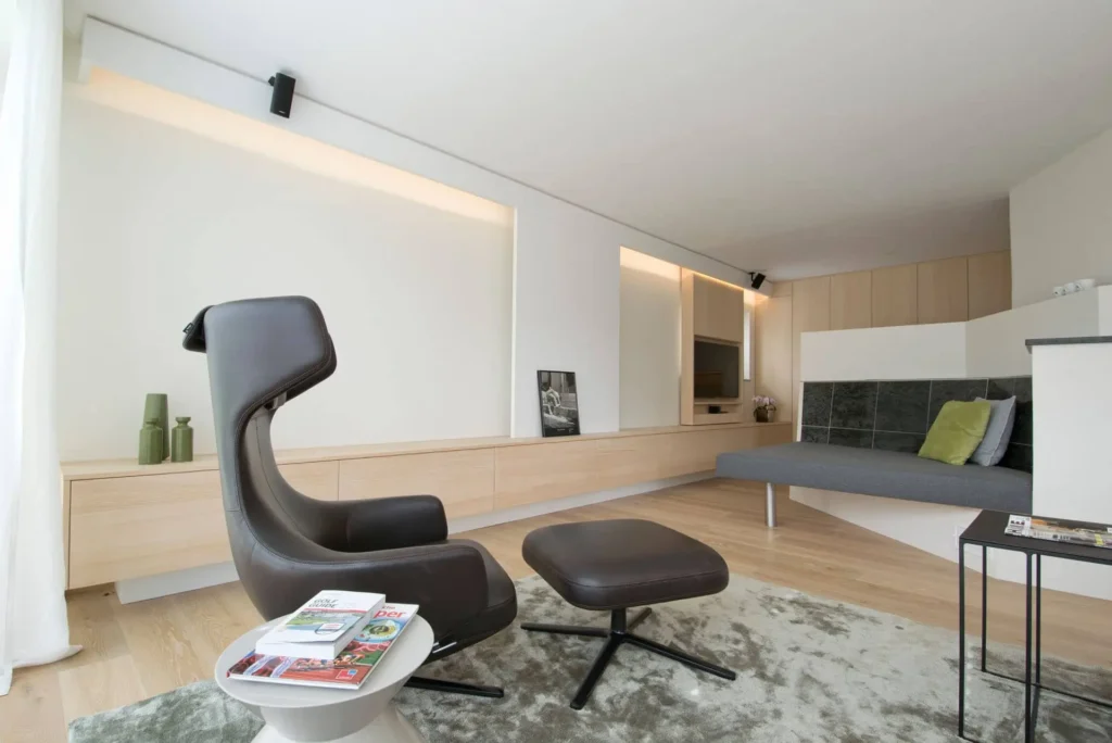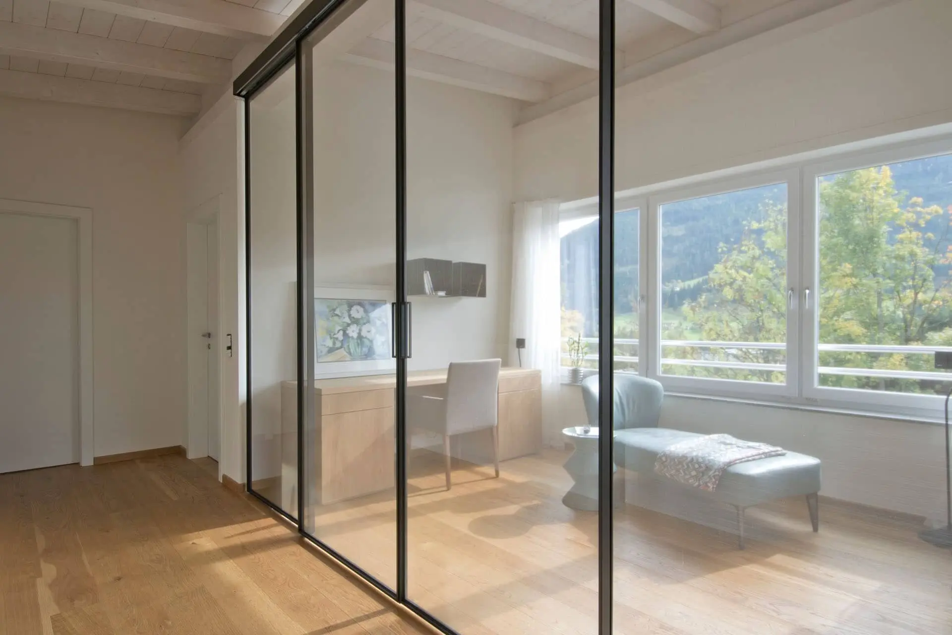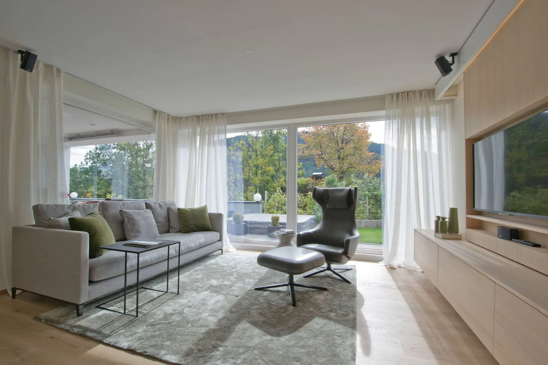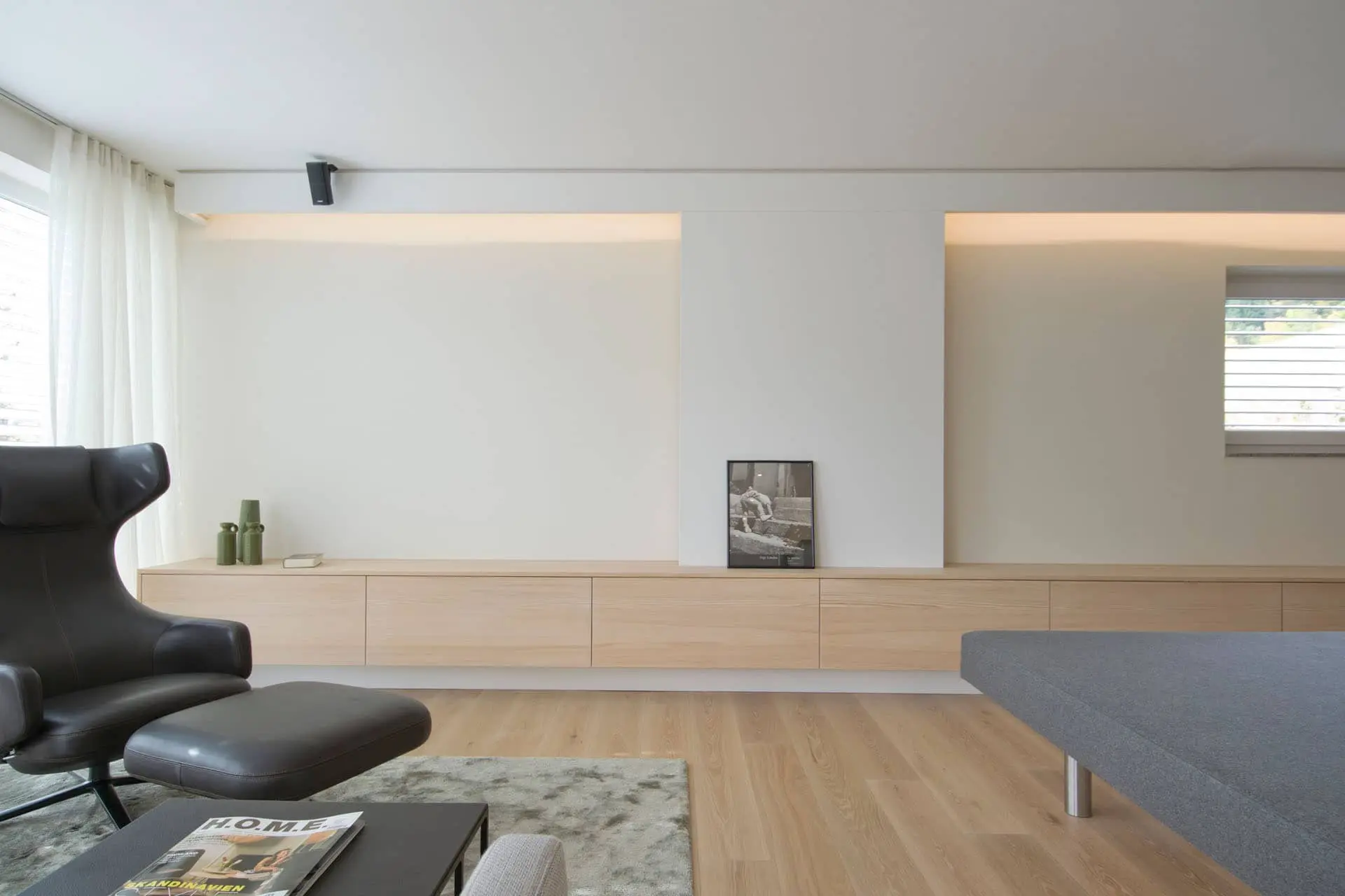 Eine perfekte Kombination aus Naturholz, edlen Textilien und Leder verbindet unser Projekt in Eben