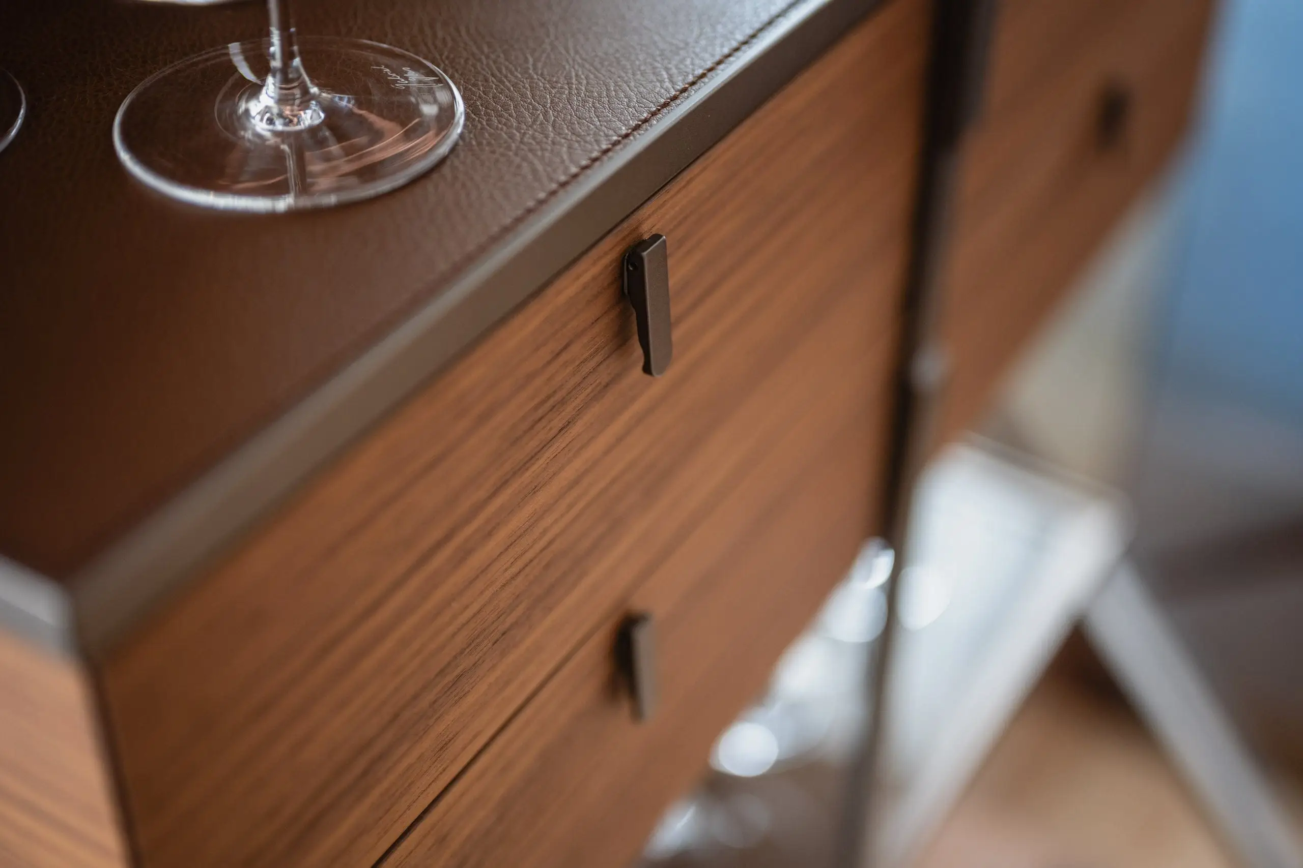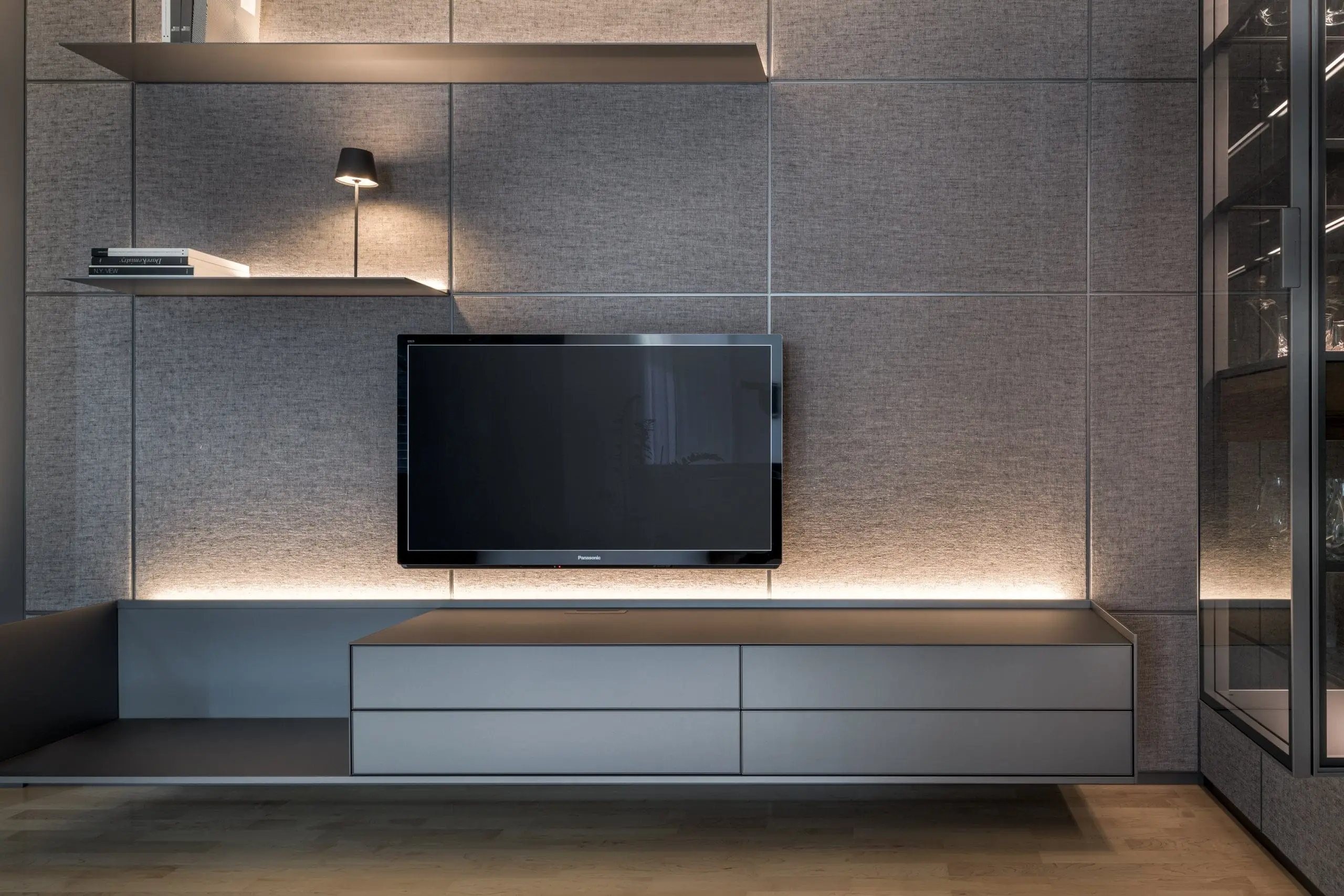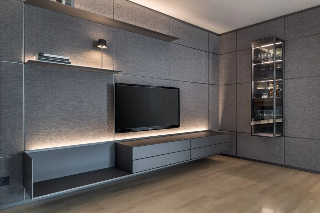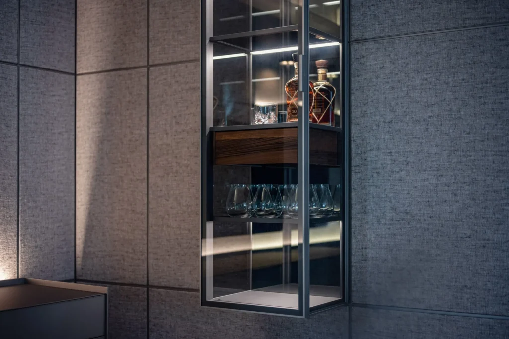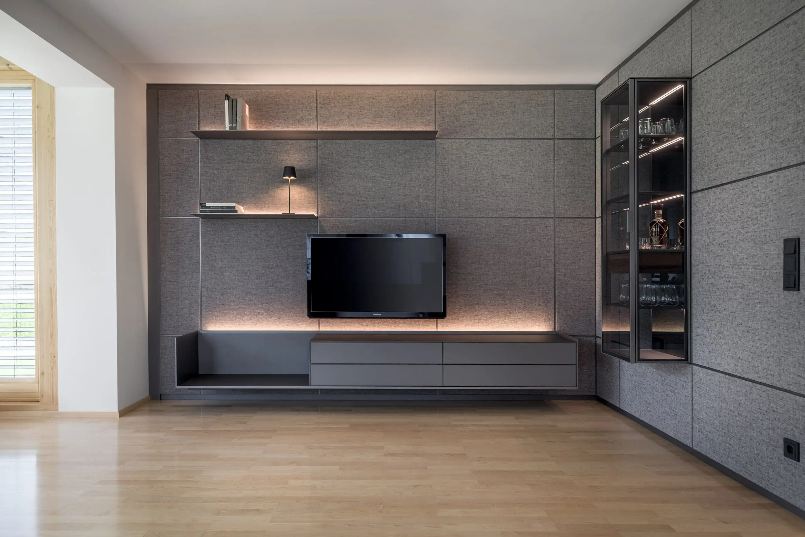 M-Studio Reiter Innenarchitektur Innenraumplanung Interior Design Konzept mit Rimadesio und Tischlerei M-Studio Reiter Tischlerei und Möbelstudio Eckbank und Tisch aus der hauseigenen Tischlerei Wandgestaltung mit Sideboard und Hängeelemente mit Rimadesio